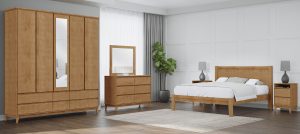 Autêntico e elegante, o design da Linha Topázio eleva os conceitos de requinte em móveis e acabamentos. Seu toque distinto em branco realça a beleza natural da madeira maciça, resultando em um visual harmônico e moderno.