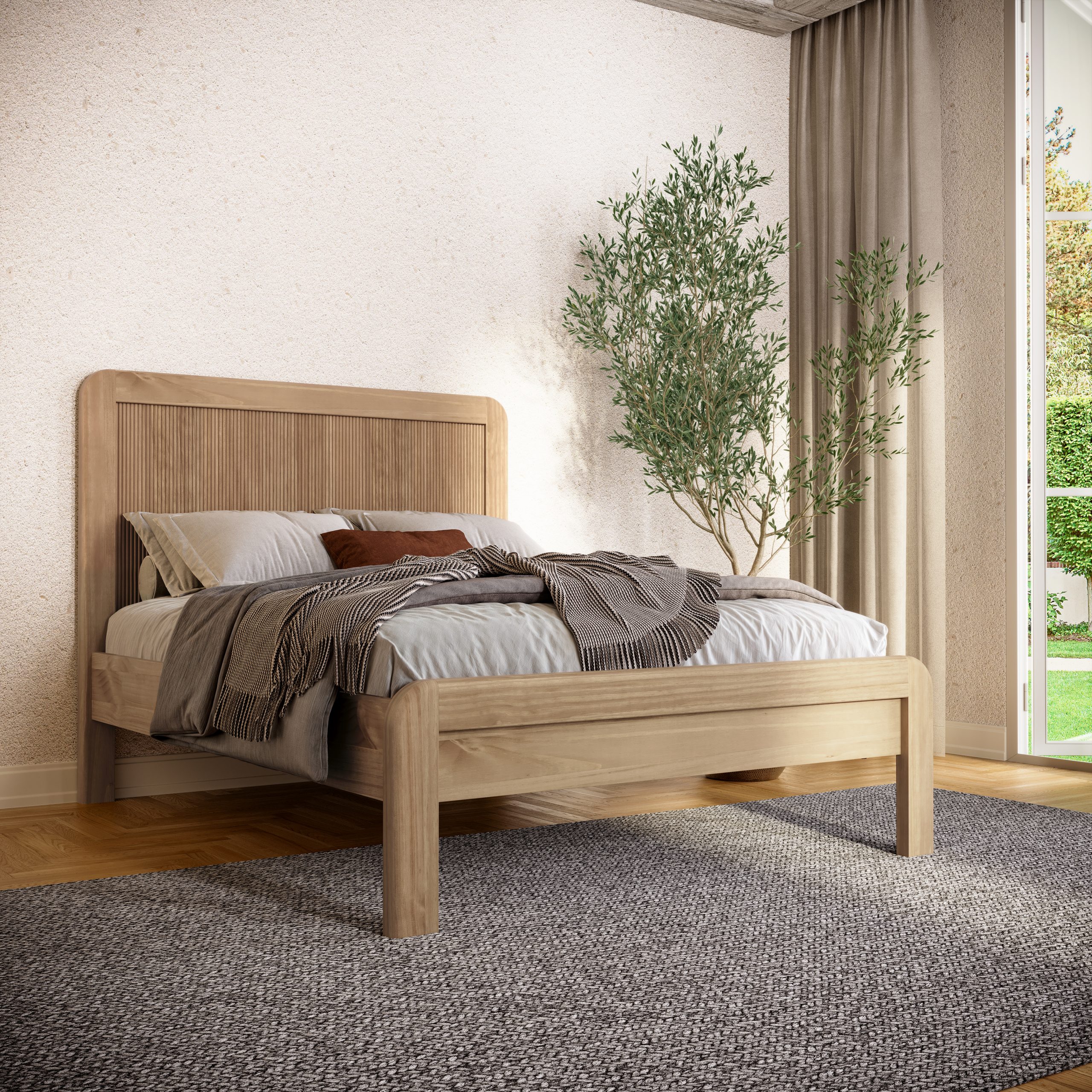 Linhas suaves e volumes arredondados transformam o ambiente em um verdadeiro refúgio de serenidade. A Madeira Maciça Taeda, com sua presença calorosa e toque orgânico, encontra no canelado um ritmo delicado, que dança com a luz e cria sombras sutis, despertando sensações. O nome Nest, que em alemão significa “ninho”, reforça a essência de abrigo e acolhimento, um lugar onde o tempo desacelera e cada detalhe foi criado para inspirar permanência, conforto e a tranquilidade que transforma o simples ato de estar em uma experiência sensorial.