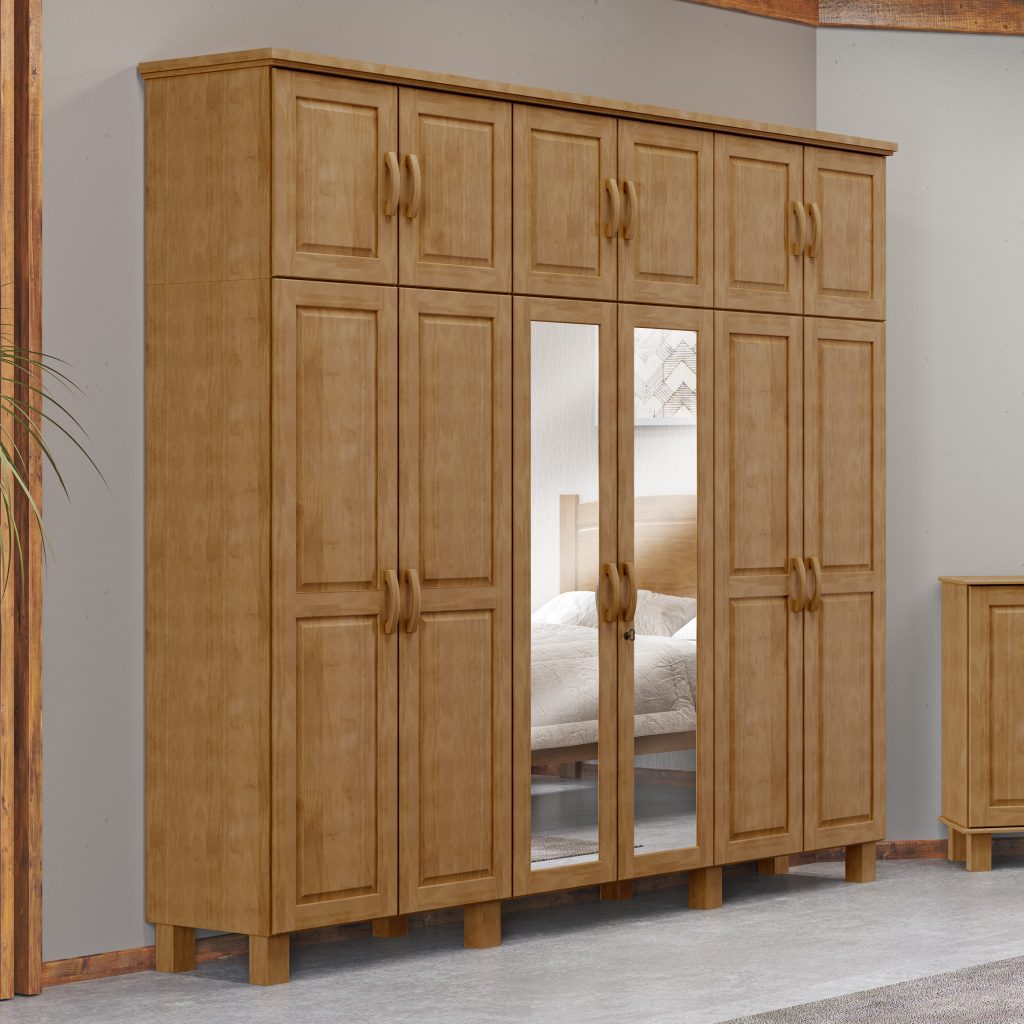 Guarda-Roupa Bipartido 8 Portas 2 Gavetas com Espelho