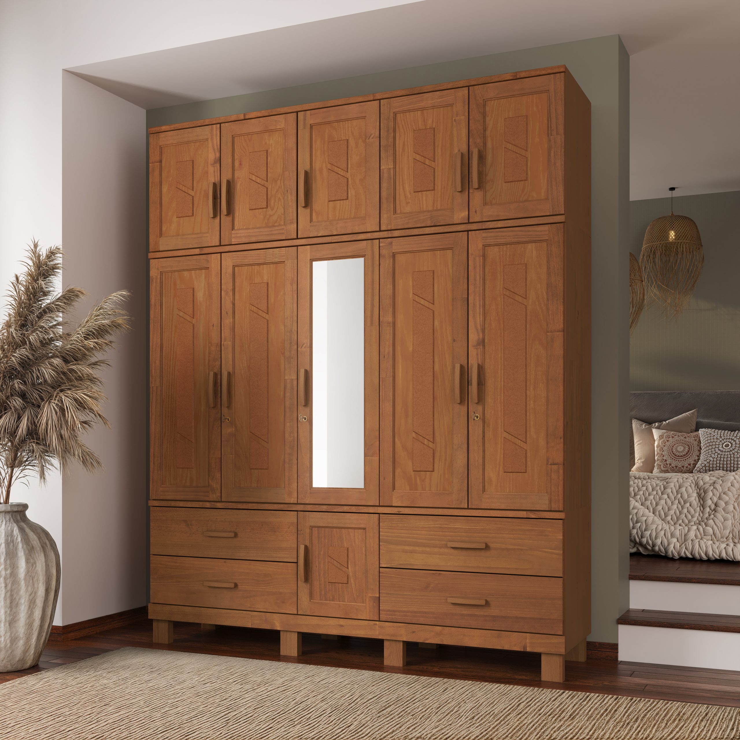 A Linha Cobre une harmonia e força de um jeito que conquista sem esforço. O design robusto passa segurança, enquanto os detalhes bem pensados entregam a praticidade que a rotina pede, tudo isso com uma elegância discreta, daquelas que deixam o quarto mais agradável só de entrar. Sua presença ajuda a ampliar a sensação de espaço, criando um ambiente organizado, bonito e acessível. Cada peça trabalha a favor do conforto, trazendo funcionalidade sem abrir mão do charme.